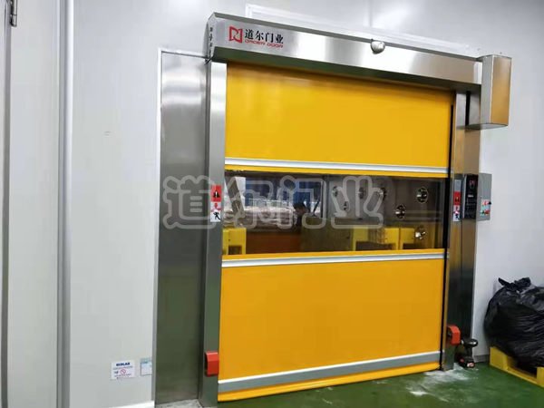 快速门又称为快速卷帘门、高速门、高速卷帘门,通过变频器控制、编码器定位、门帘(PVC材质)快速升降,专为物料的快速流动(以缩短进出时间)而设计的。快速门是以多关节活动的软片串联在一起,在固定的滑道内,以门上方卷轴为中心转动上下的门,安全配置和密封性能尤为重要。